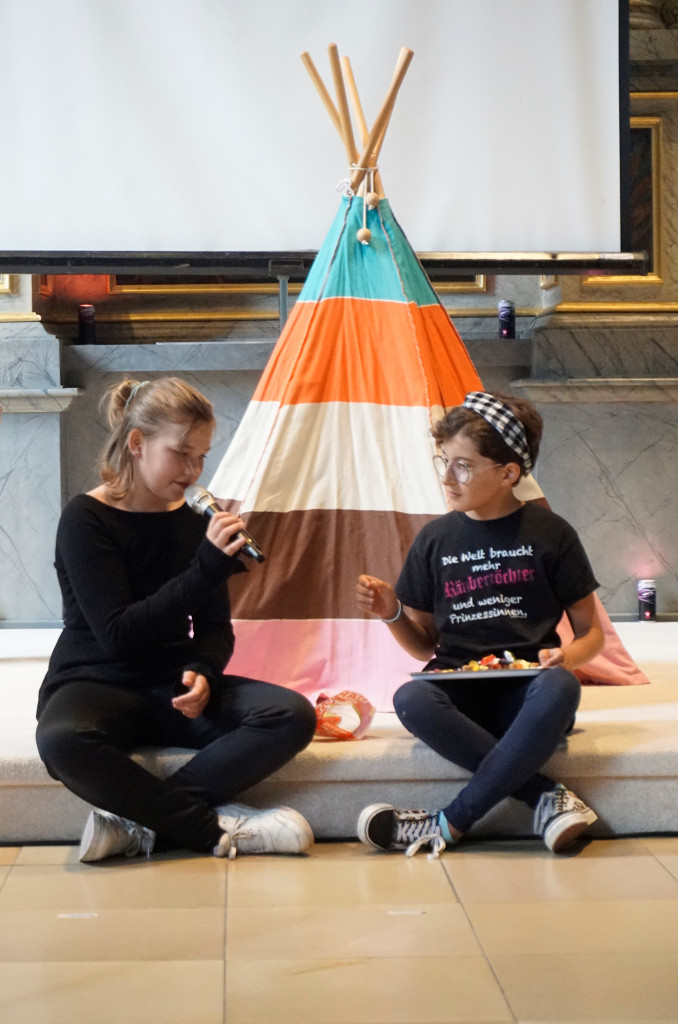 Das Mitarbeiterteam unter Leitung von Muriel Ramsteiner hatte wieder ein buntes und sehr kurzweiliges Programm für die Familien und Freunde der teilnehmenden Kinder zusammengestellt, bei dem es an nichts fehlte. Von Gesang über Sketch, Showeinlagen und Akkrobatik war alles dabei. Musikalisch begleitet wurden sie von der Band "Monday socks"